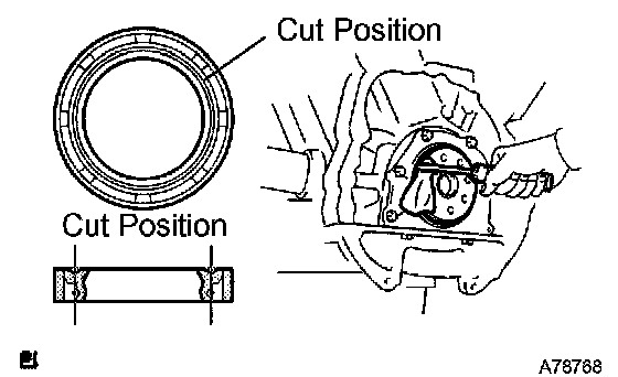 b. Using a screwdriver with the tip wrapped in tape, pry out the oil seal.