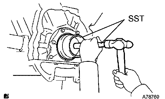 b. Using SST and a hammer, tap in the oil seal until its sur face is flush with the rear oil seal retainer edge.