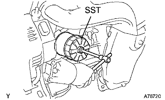 ^ Do not use the timing belt tension when installing or removing the mounting bolt of the camshaft timing pulley.