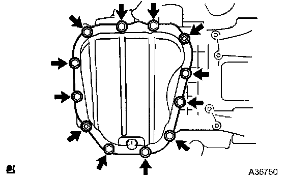 ^ Do not damage the flange portion of the oil pan No. 2 when removing.
