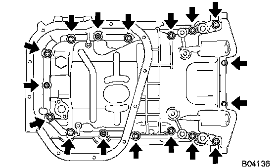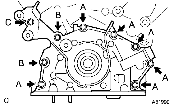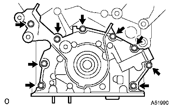 e. Install the oil pump with the 9 bolts. Tighten the bolts uniformly in several steps.