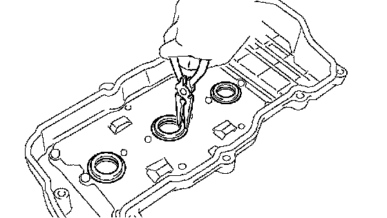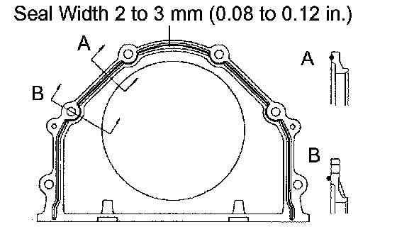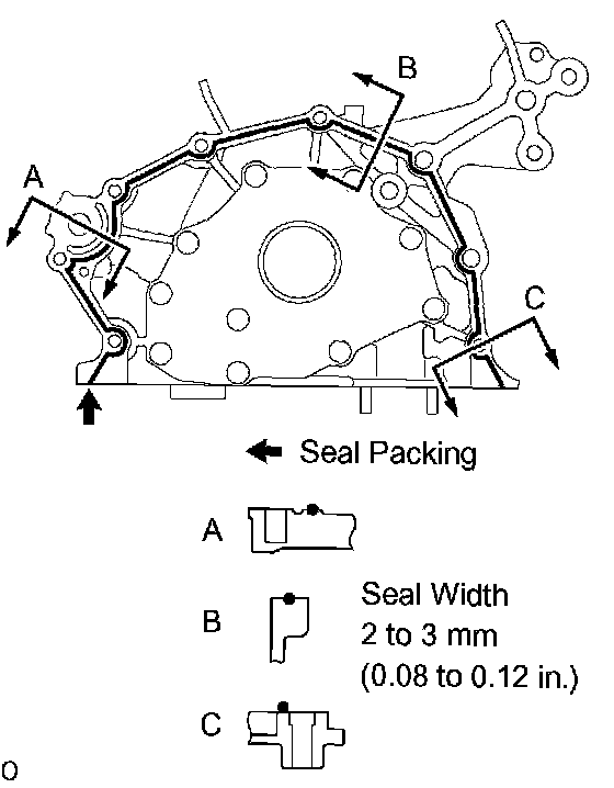 b. Apply a continuous bead of seal packing (Diameter 2 to 3 mm (0.08 to 0.12 inch)) as shown in the illustration.