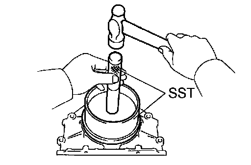 a. Using SST and a hammer, tap in the new oil seal until its surface is flush with the rear oil seal retainer edge.
