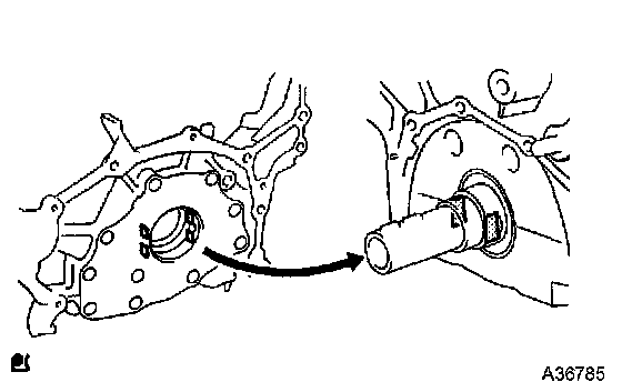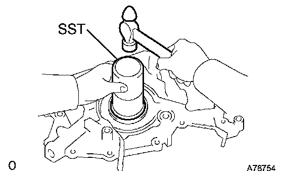 a. Using SST and a hammer, tap in the new oil seal until its surface is flush with the oil pump body edge.