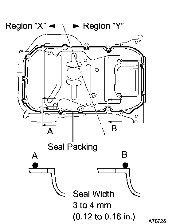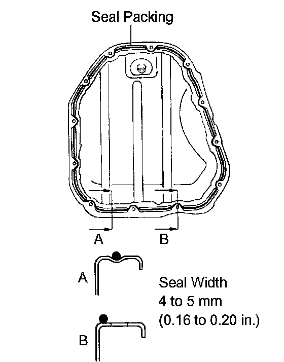 b. Apply a continuous bead of seal packing (Diameter 3 to 4 mm (0.12 to 0.16 inch)) as shown in the illustration.