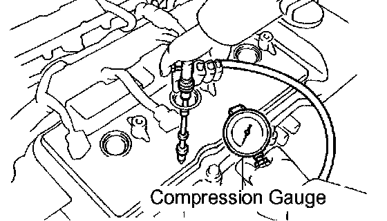 1. Insert a compression gauge into the spark plug hole.