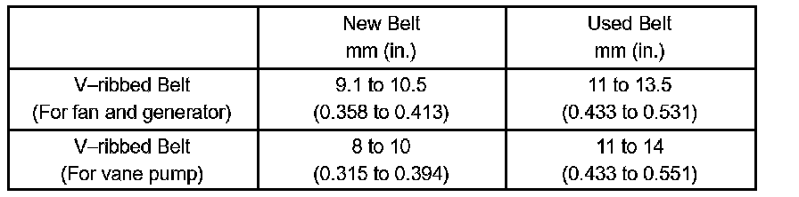 ^ When reinstalling a belt which is used for over 5 minutes, adjust its belt deflection and tension to the inter mediate value of each specification in "Used belt".
