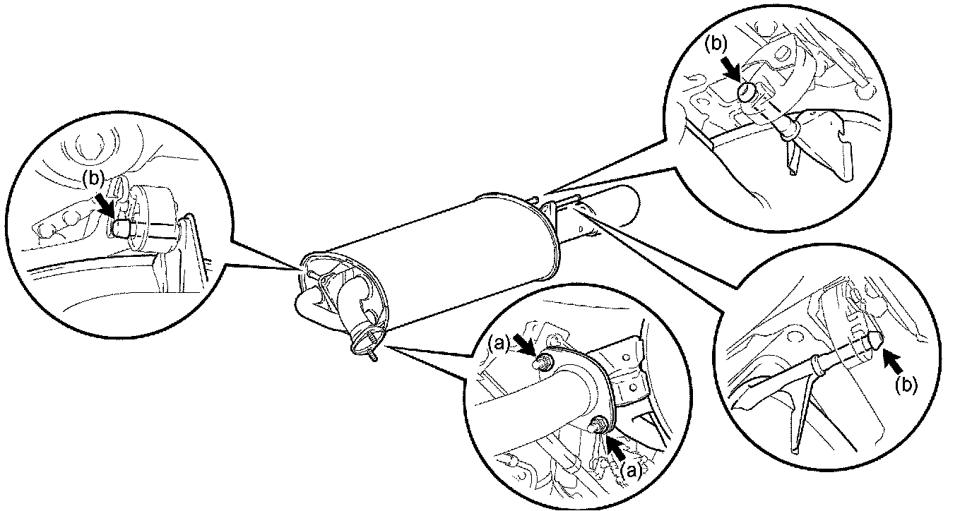 b. Remove the exhaust pipe center and gasket from the 2 exhaust pipe supports.