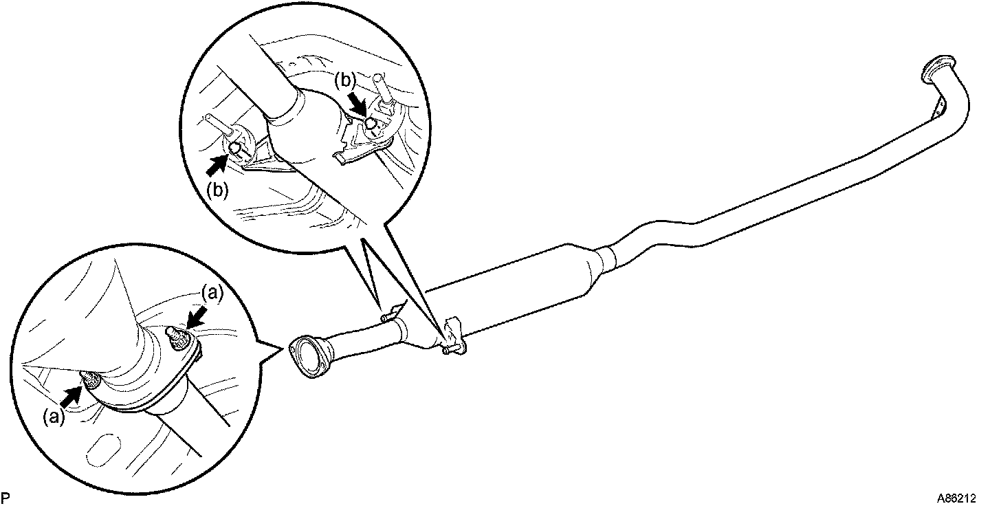 a. Install a new gasket and the exhaust pipe center to the 2 exhaust pipe supports.