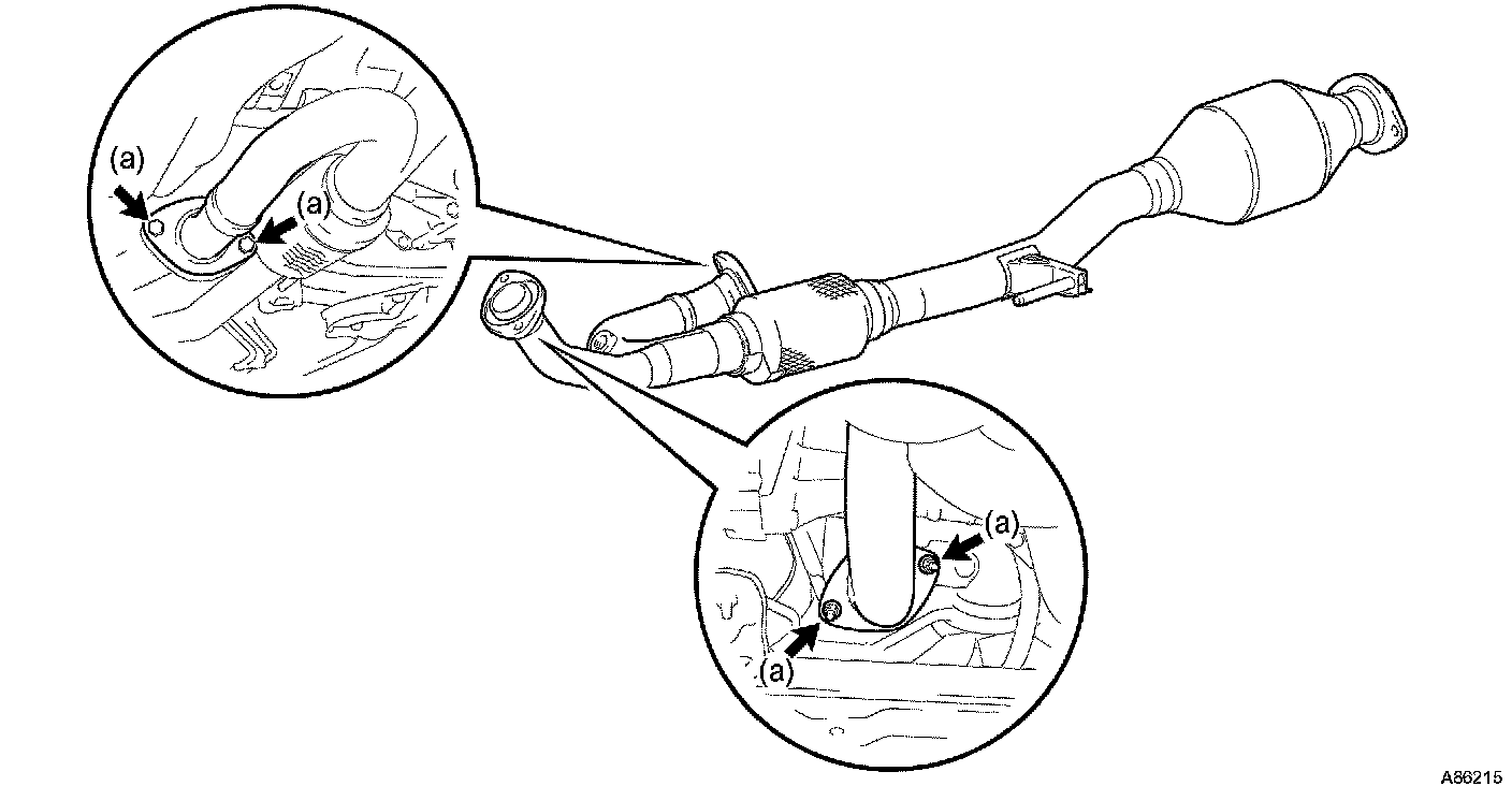 a. Remove the 2 bolts and 2 nuts, then remove the exhaust pipe front and 2 gaskets.