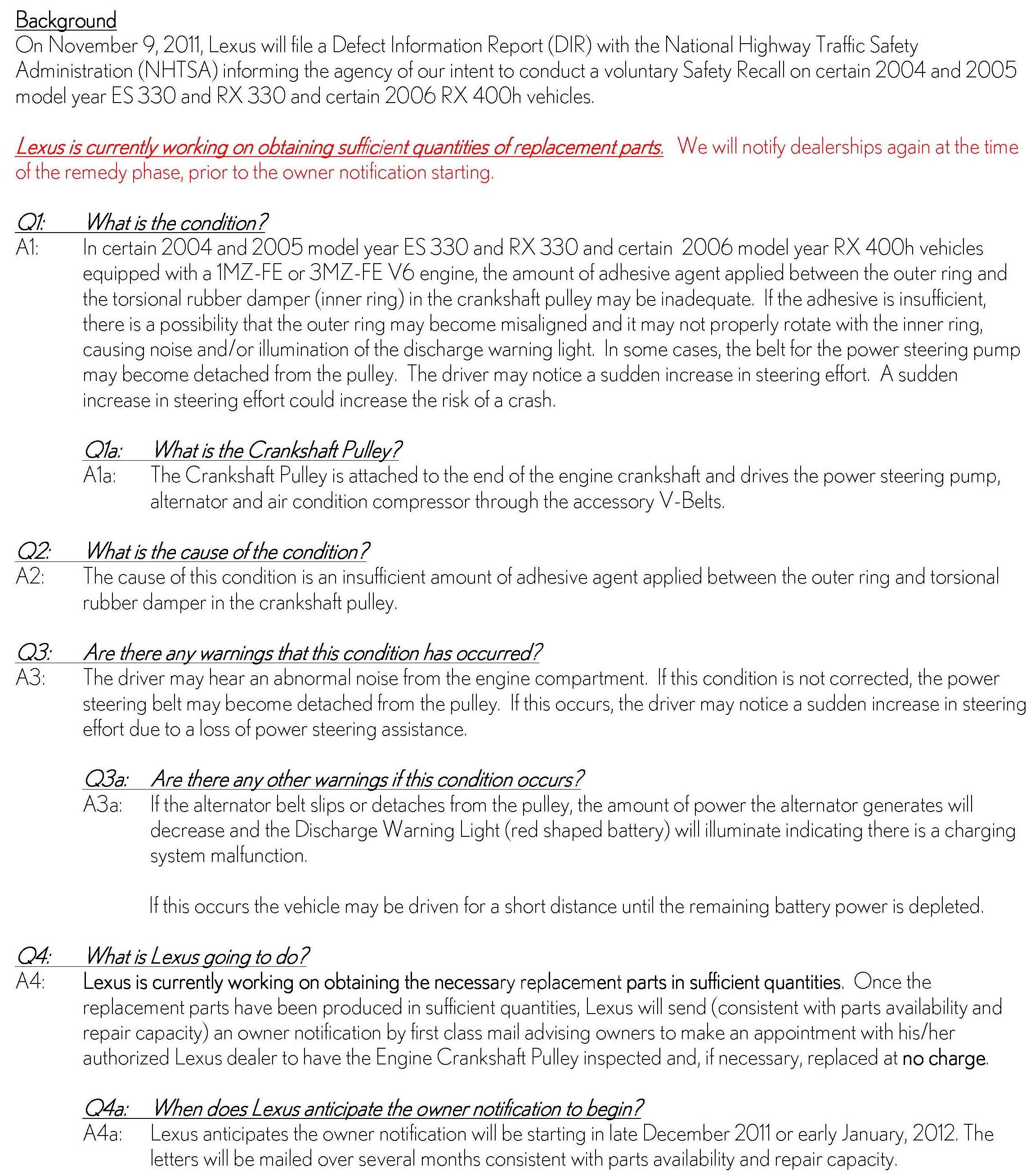 Recall - Crankshaft Pulley/Drive Belt Replacement