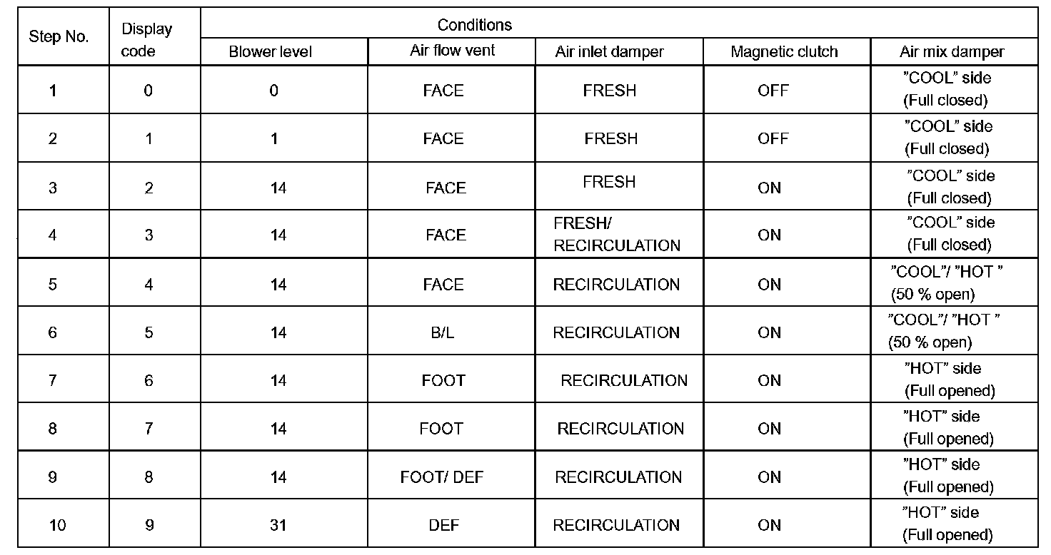 LIST OF OPERATION METHODSBy operating each of the A/C control switches as shown the diagram, it is possible to enter the diagnosis check mode.