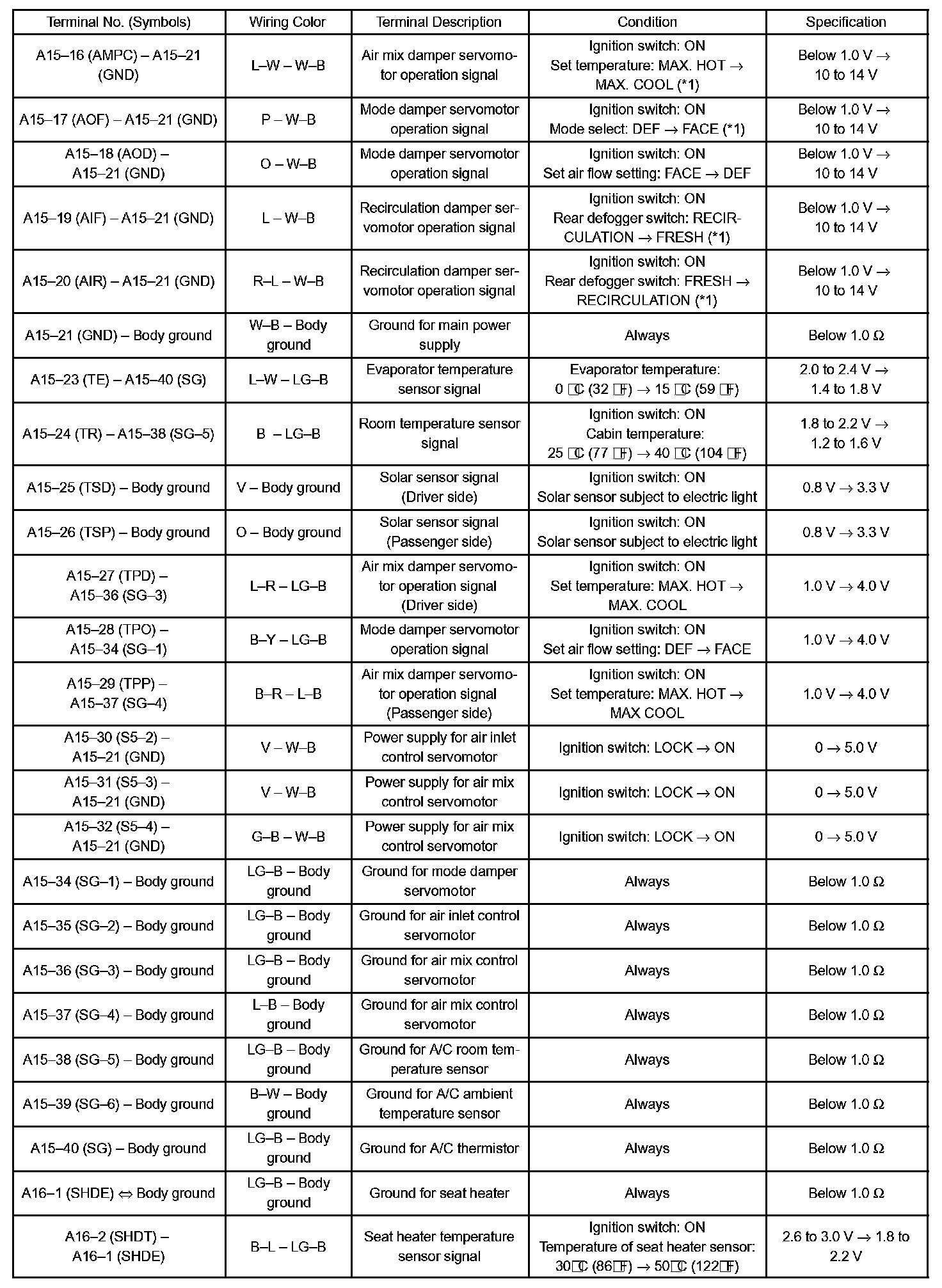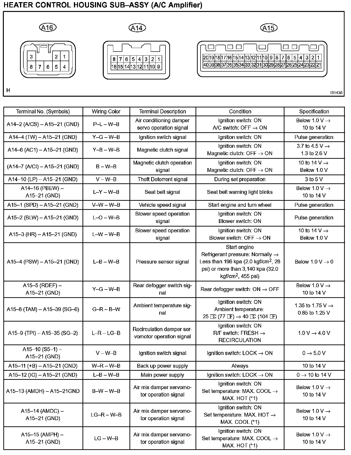 Terminals Of ECU/Pinouts - Heated Control Housing Sub-assy (A/C Amplifier) Part 3:
