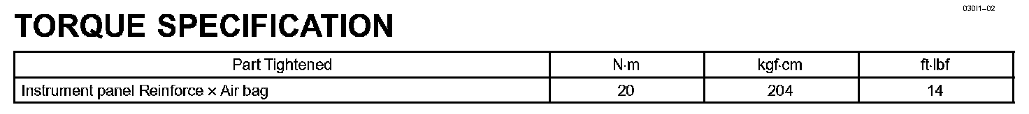 Instrument Panel / Meter - Torque Specification: