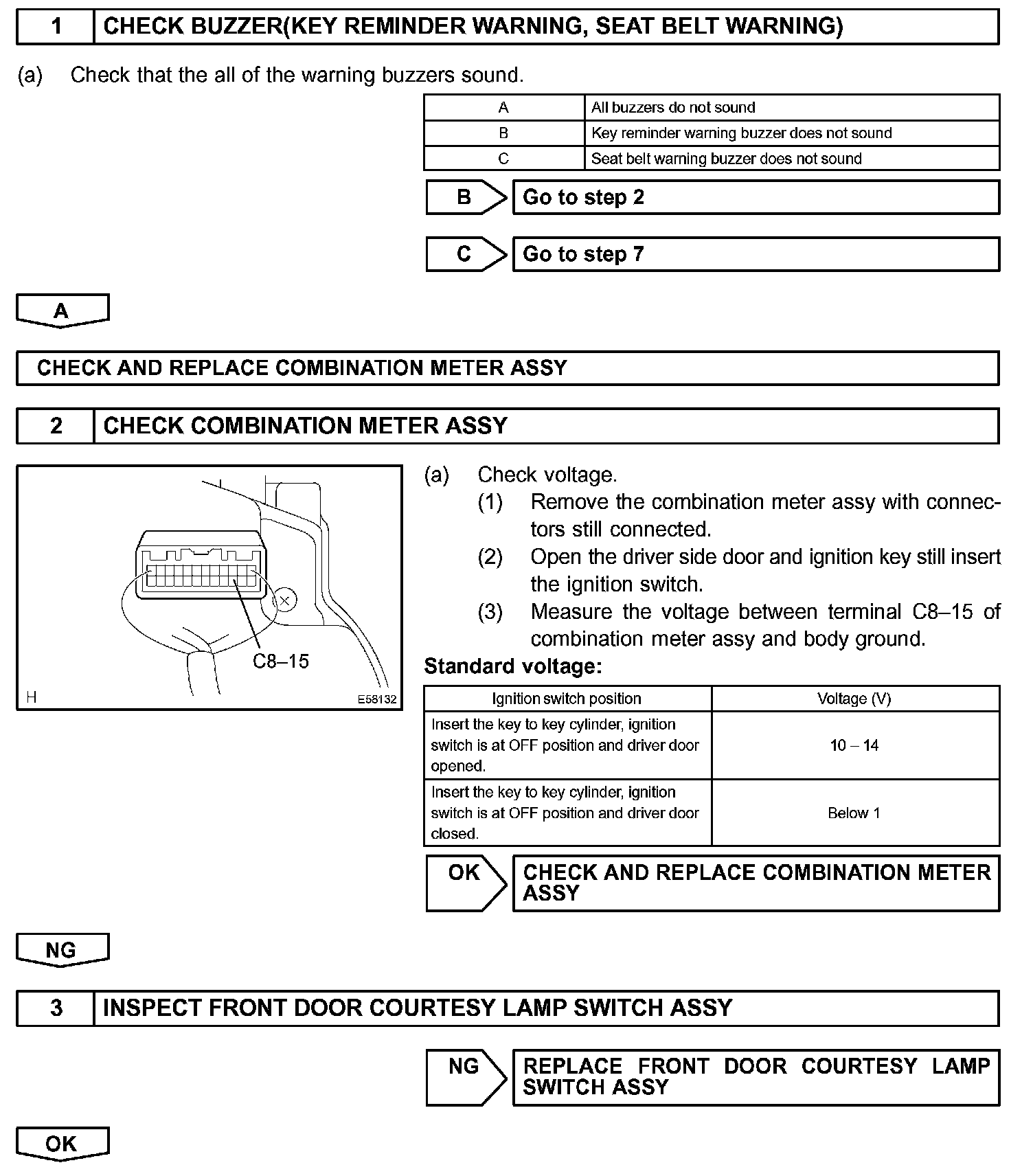 Buzzer Does Not Sound (Key Reminder Warning, Seat Belt Warning)