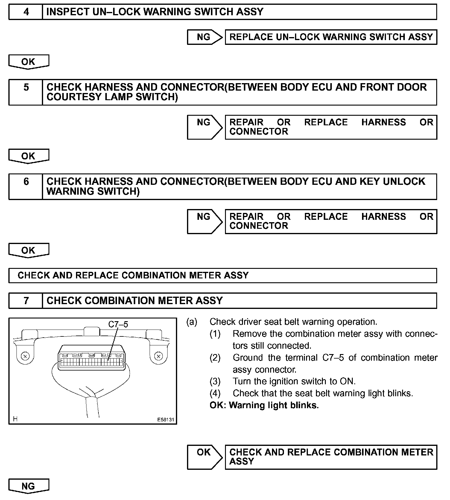 BUZZER DOES NOT SOUND (KEY REMINDER WARNING, SEAT BELT WARNING)
