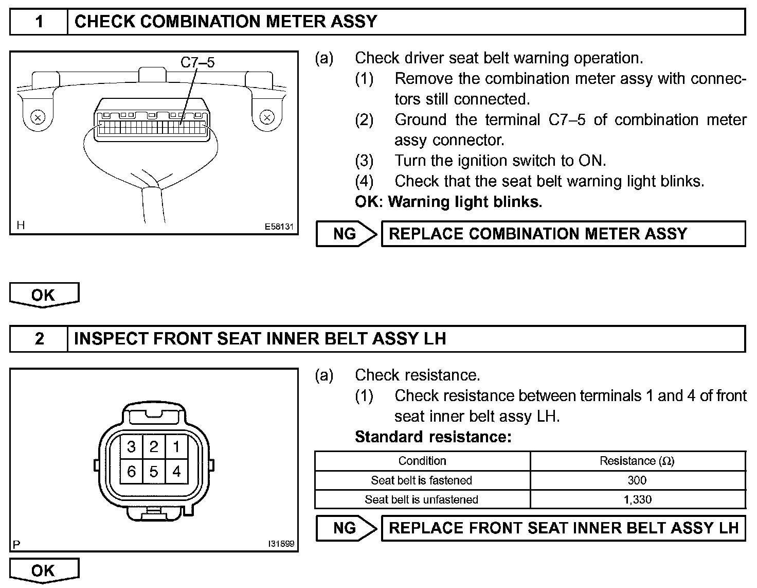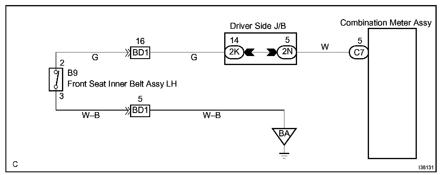Seat Belt Warning Lamp For Driver's Seat Does Not Operate