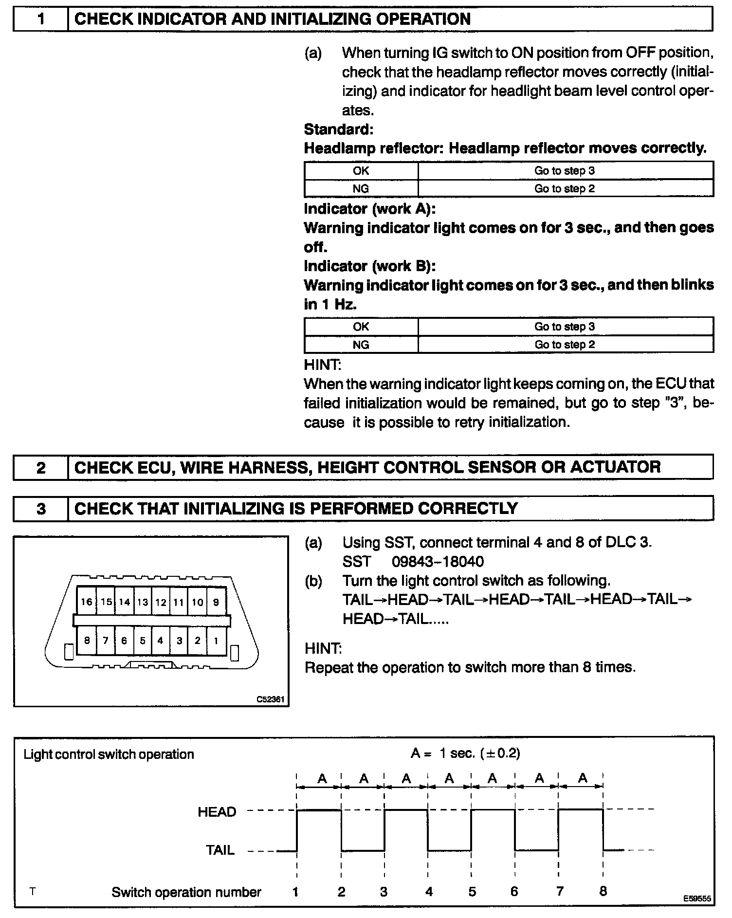 2. HEADLIGHT BEAM LEVEL CONTROL ECU INITIALIZING