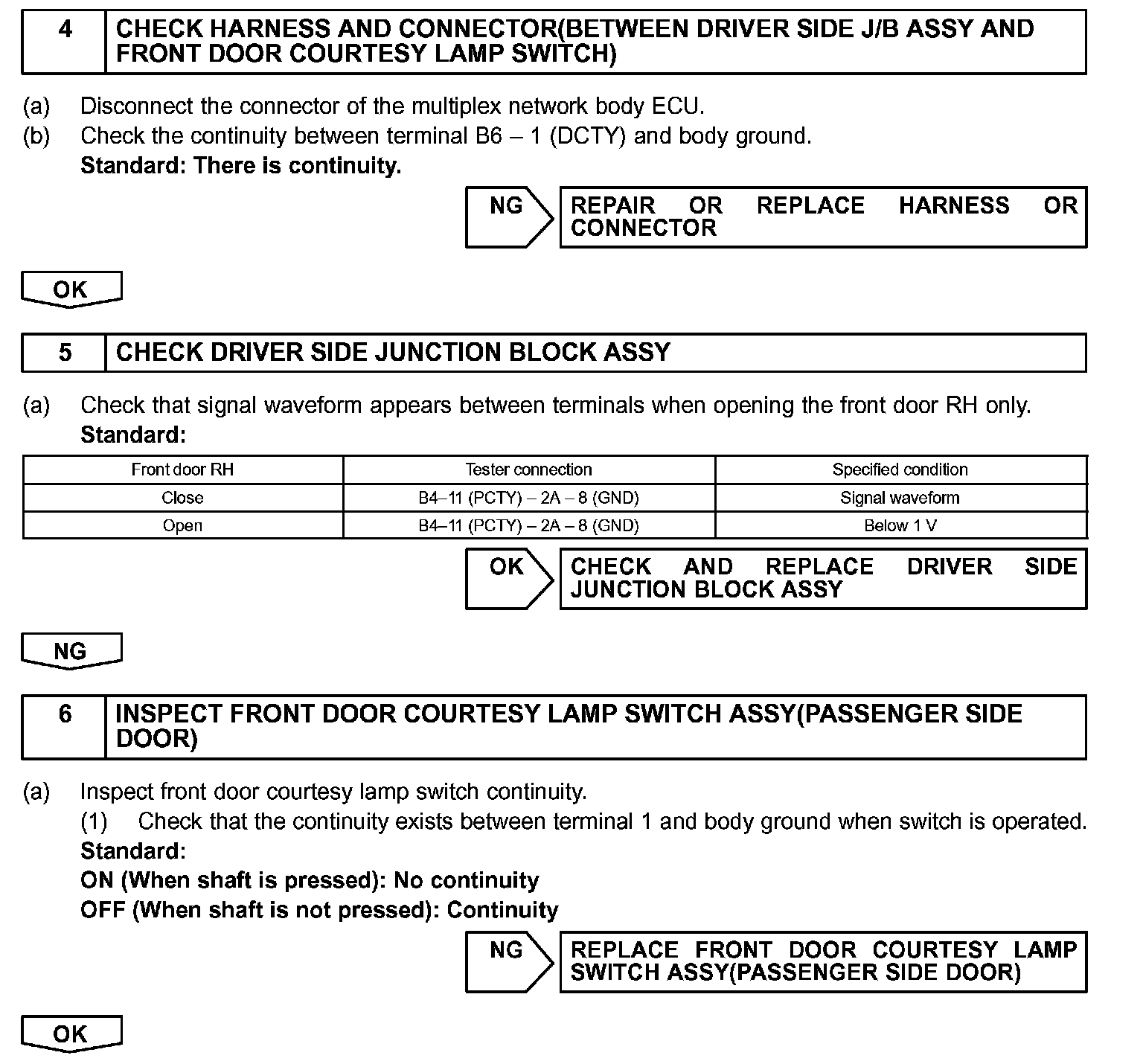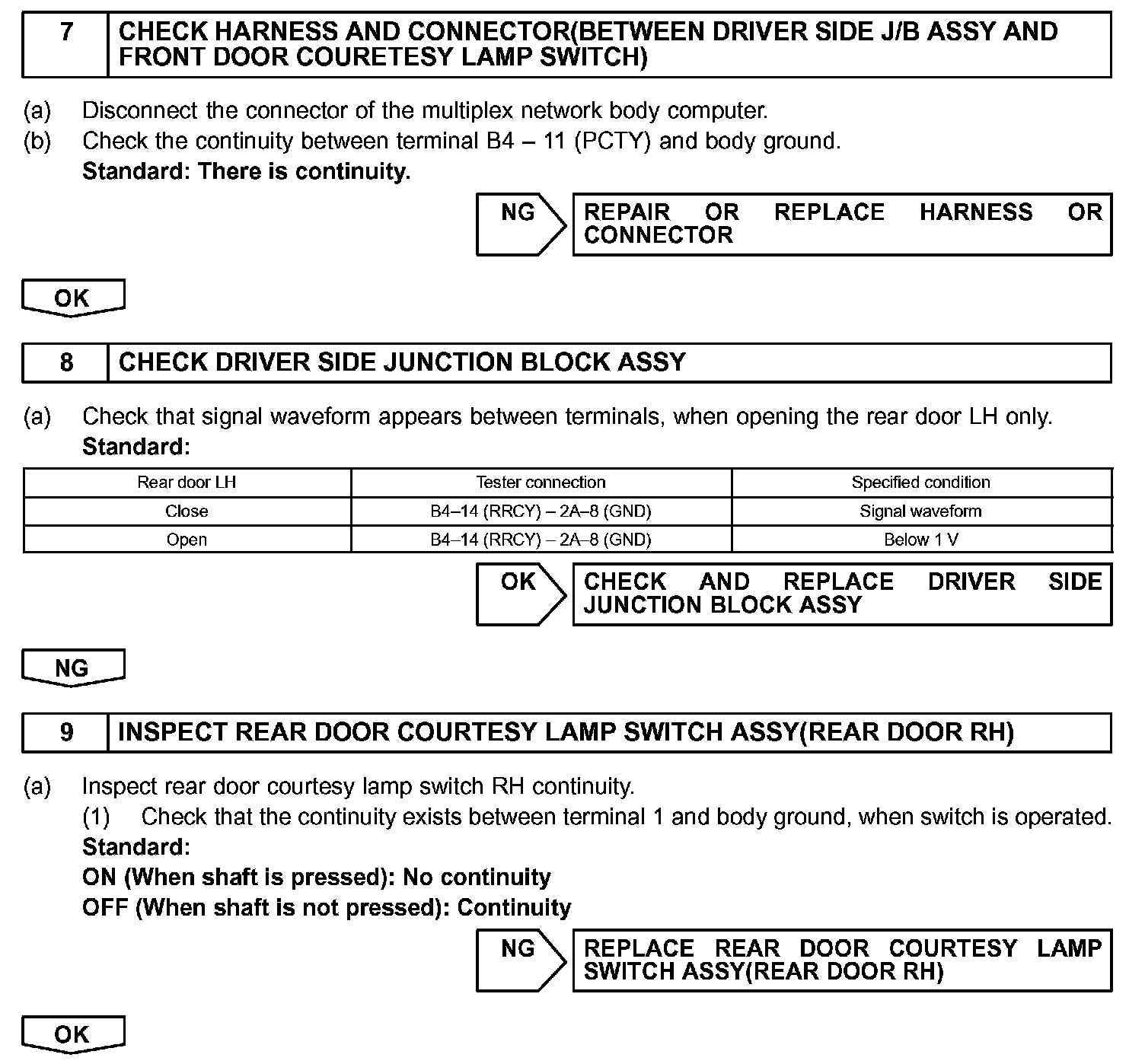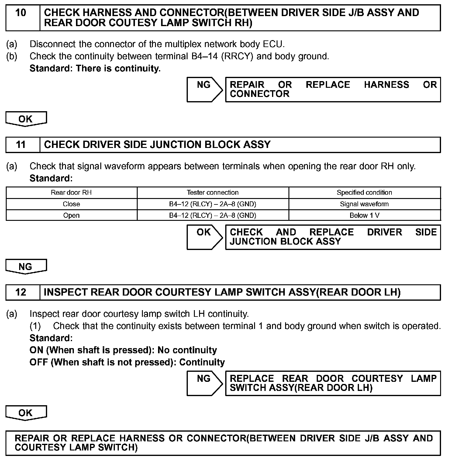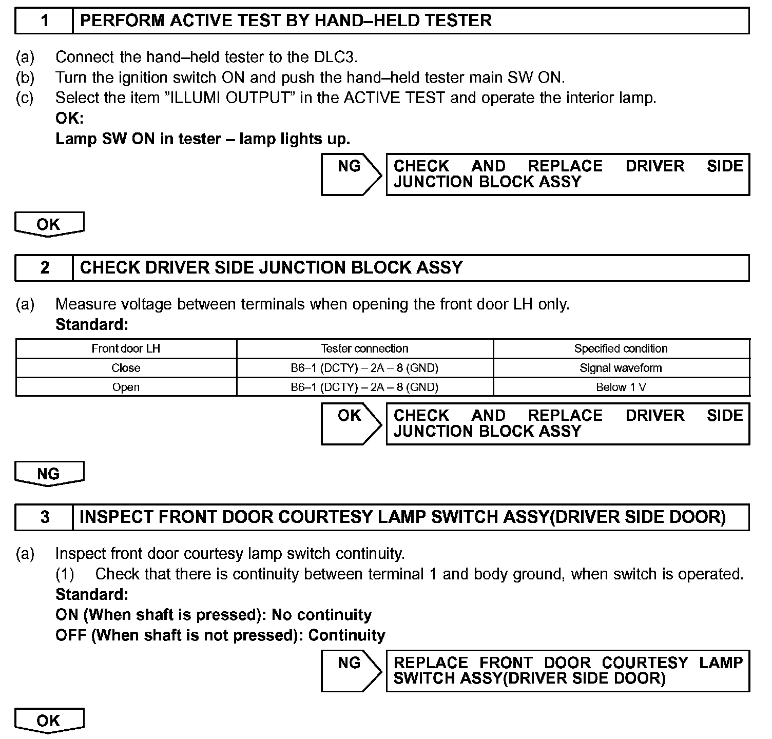 ROOM LAMP ASSY NO.1 DOES NOT GO OFF
