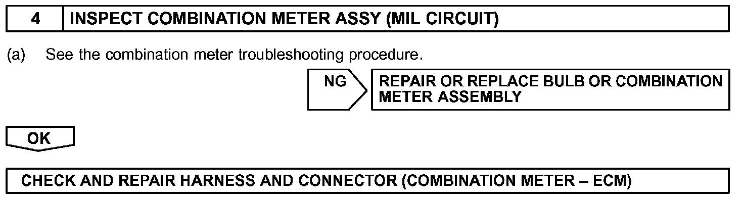 The instrument panel GAUGE fuse provides the circuit power and the ECM provides the circuit ground that illuminates the MIL.