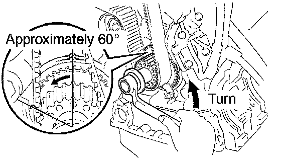 1. Turn the crankshaft counterclockwise by approximately 60°.