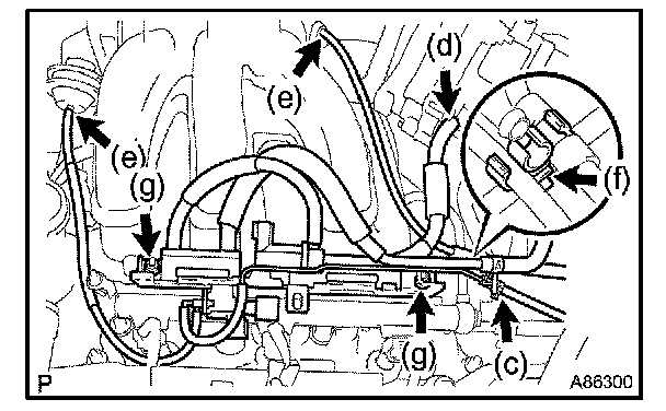 (c) Apply a light coat of spindle oil or gasoline to the place where the fuel delivery pipe contacts the 0-ring.