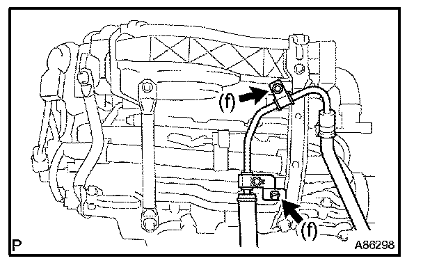 (f) Remove the 2 nuts, then remove the pressure feed tube.
