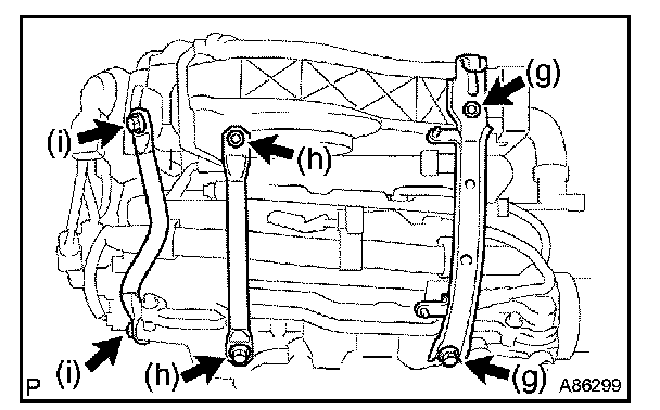 (i) Remove the 2 bolts, then remove the surge tank stay No.2.