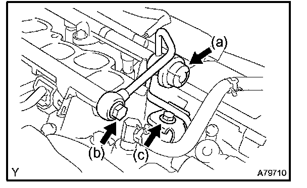 (h) Remove the 2 bolts, then remove the surge tank stay No.1.
