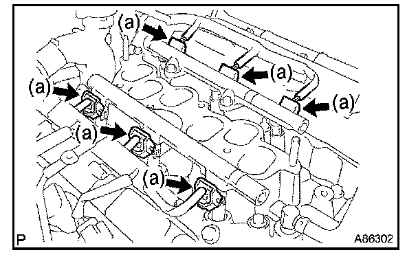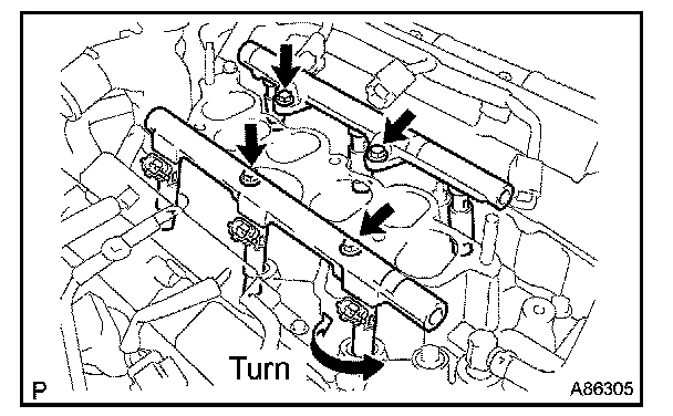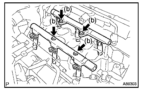 (b) Remove the 4 bolts, then remove the 2 fuel delivery pipes together with the 6 fuel injectors.