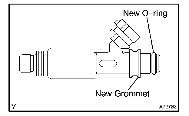 (b) Apply a light coat of spindle oil or gasoline to new O-rings, then install them to each fuel injector.