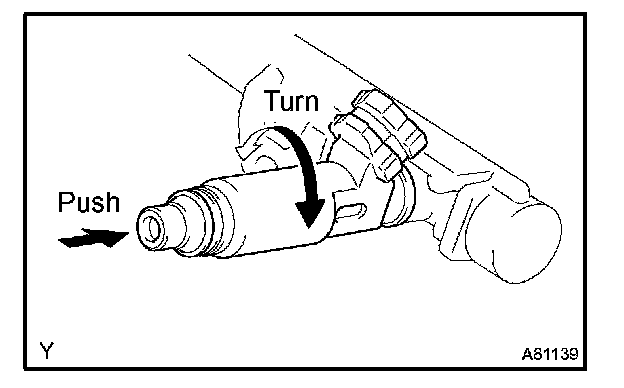 (d) Push the fuel injector while twisting it back and forth to install it in the fuel delivery pipe.