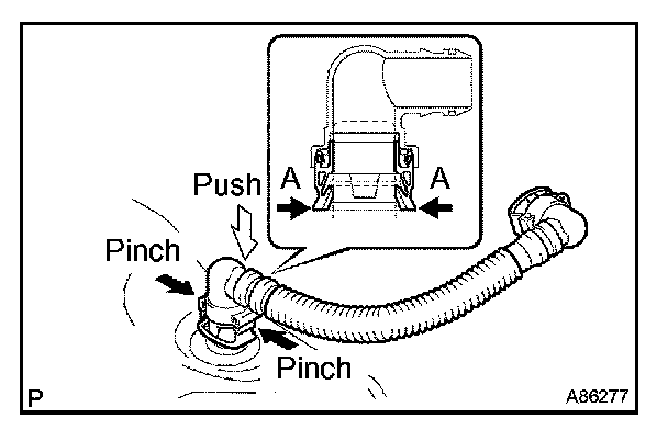 (1) Pinch the tube connector, then pull out the fuel tube No.1.