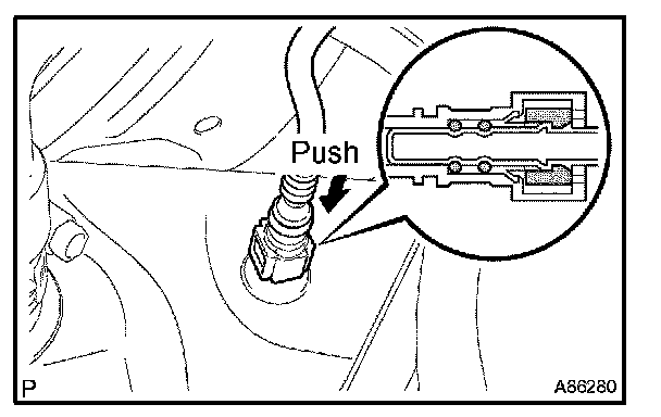 (a) Push in the quick connector to the pipe until the quick connector makes a "click" sound.