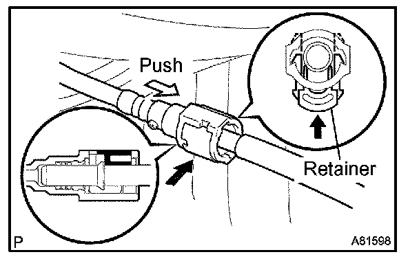 (1) Push in the quick connector to the pipe until the quick connector makes a "click" sound, then push up the retainer until the claws lock.