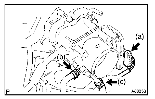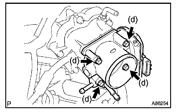 (d) Disconnect the fuel vapor feed hose from the 2 hose clamps.