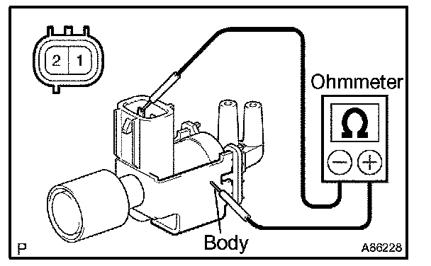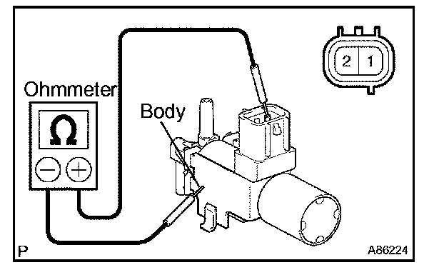 1. Using an ohmmeter, check that there is no continuity between each terminal and the body.