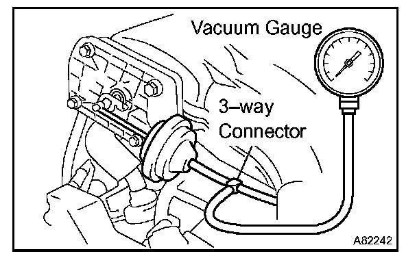 1. Using a 3-way connector, connect the vacuum gauge to the actuator hose as shown in the illustration.