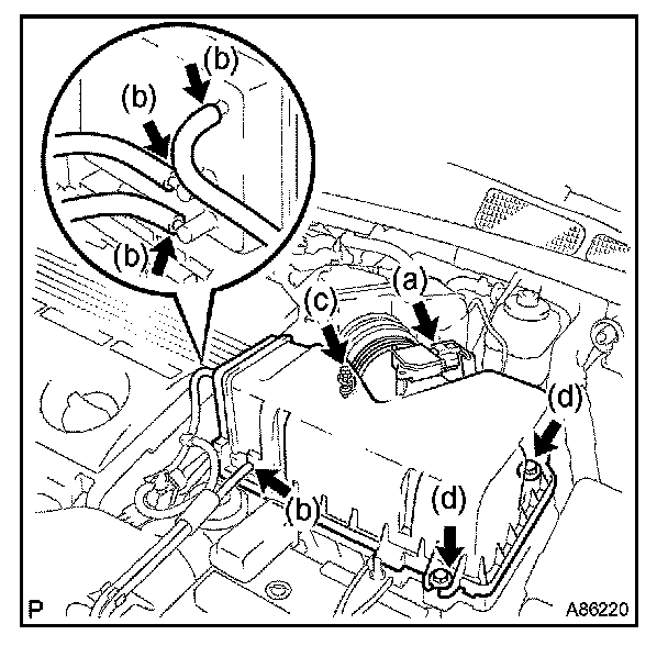 d. Loosen the 2 bolts, then remove the air cleaner cap.