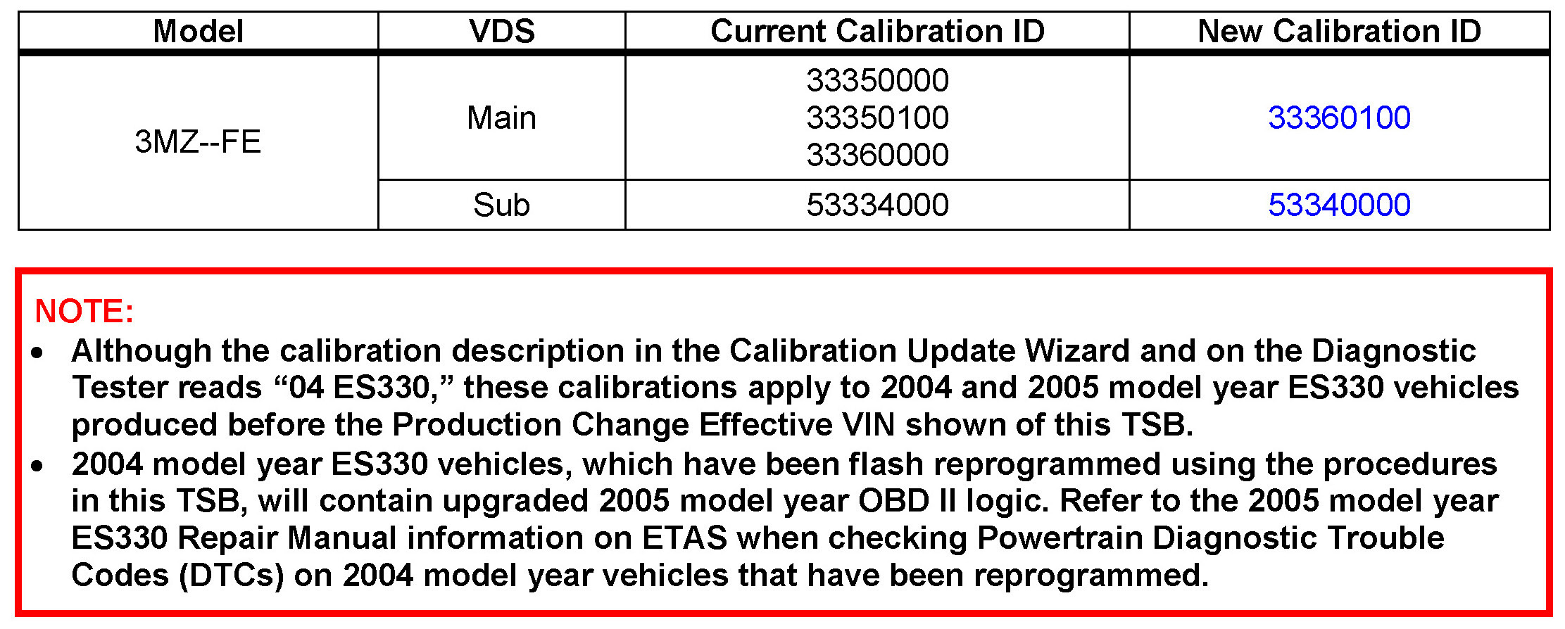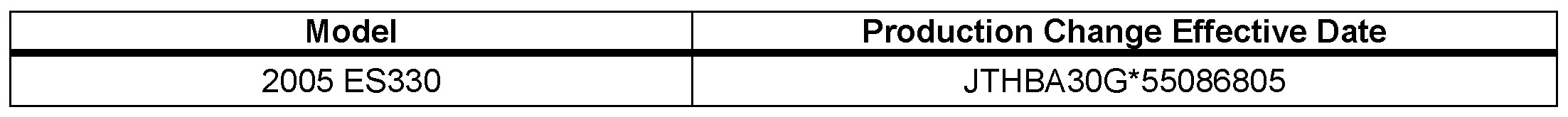 - 2005 model year ES330 vehicles produced BEFORE the Production Change Effective VIN shown below.