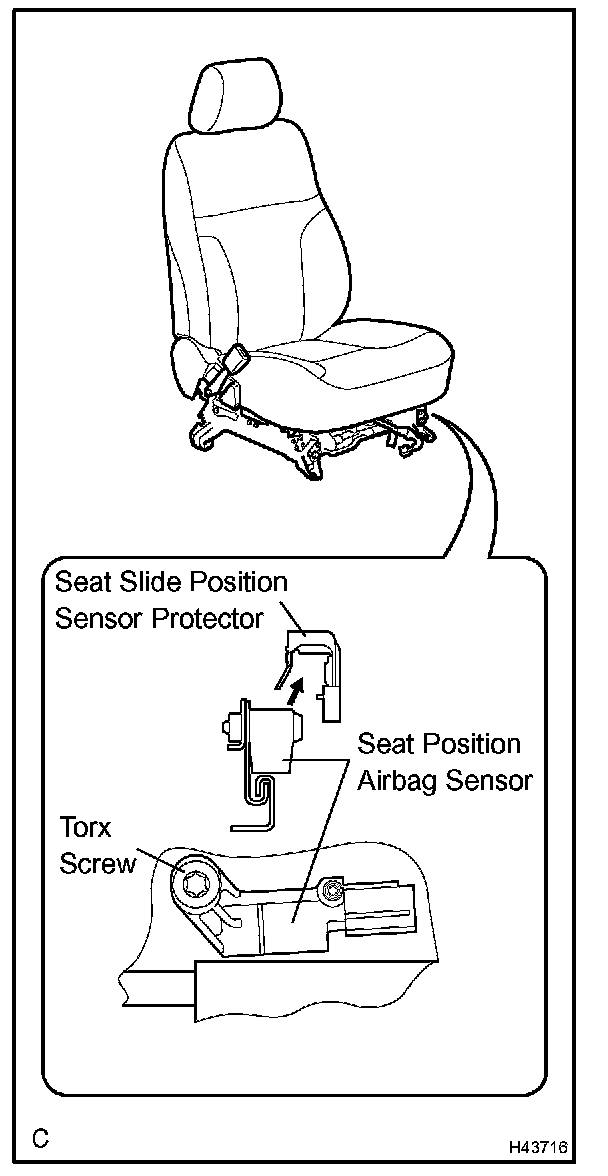 (b) Using a torx socket wrench (T30), remove the torx screw and the seat position airbag sensor.