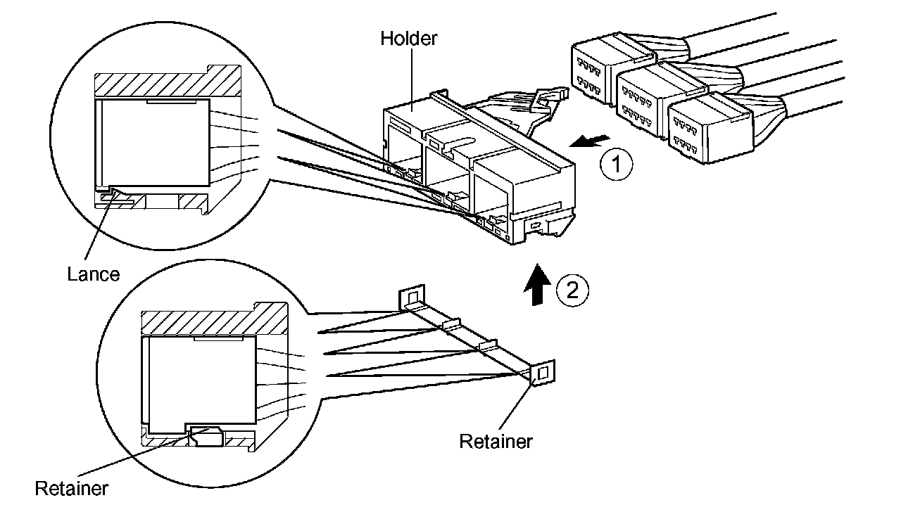 (1) Install the connectors to the holder. (When locking, a click sound can be heard.)