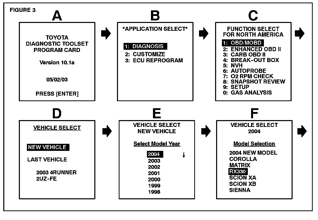 The RX 330 is used as an example. Use the same procedure for the ES 330.
