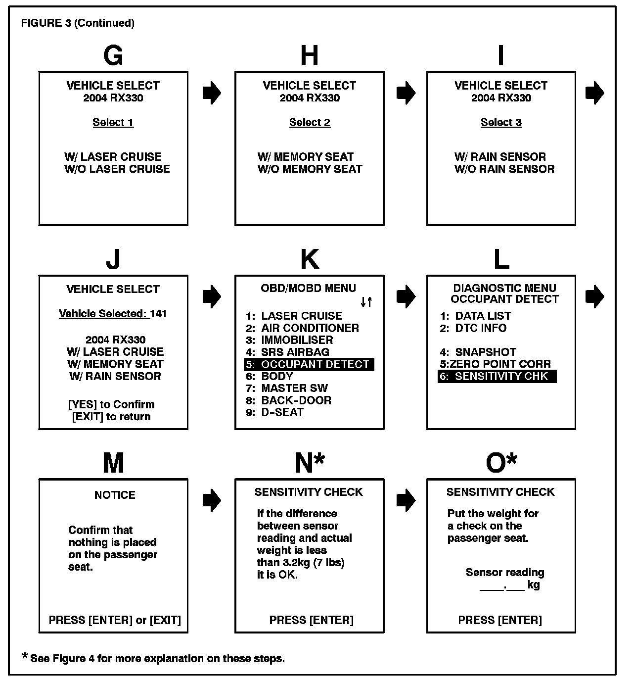 ^ For any reason, the indicated weight on the passenger seat (using the Lexus Diagnostic Tester) is not within 7 lbs (3.2 kg) of the actual weight on the seat.