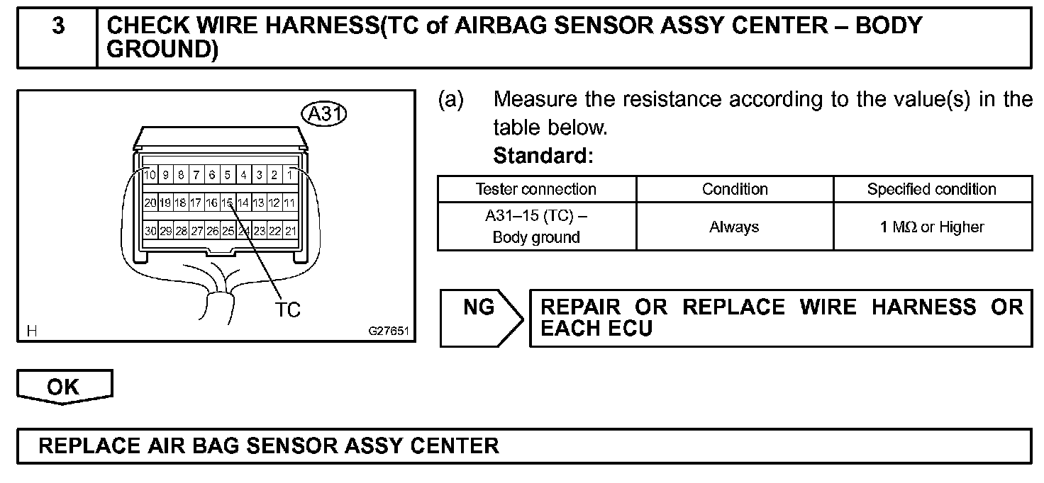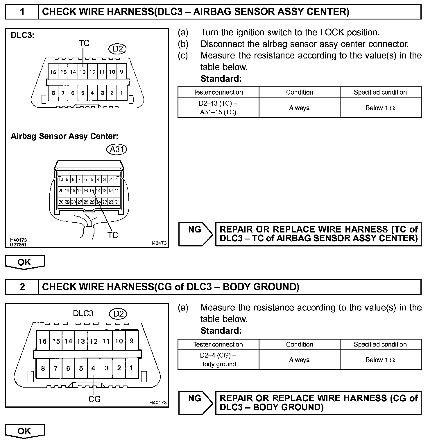 HINT: When each warning light keeps blinking, a ground short in the wiring of terminal TC of the DLC3 or an internal ground short in each ECU is suspected.