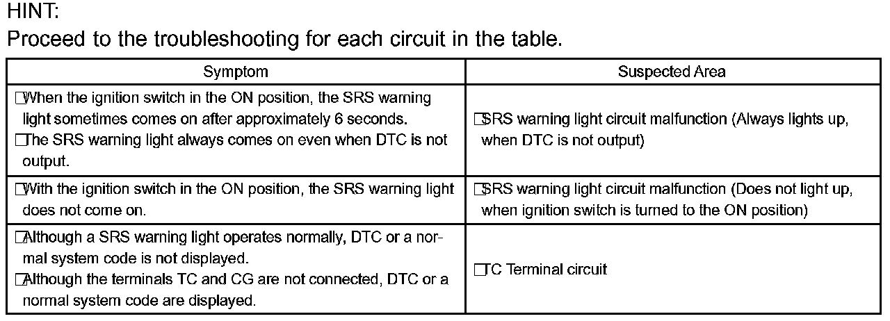 Problem Symptoms Table: