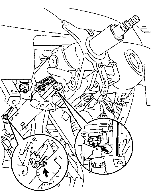 b. Remove the cable cap claw from the key interlock and pull out the floor shift parking lock cable assy.