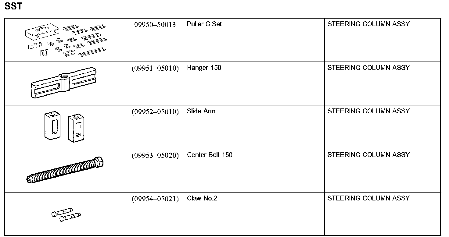 Steering Column - Recommended Tools: