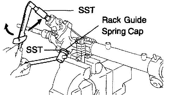 e. Using SST, loosen the rack guide spring cap until the compression spring is not functioning.