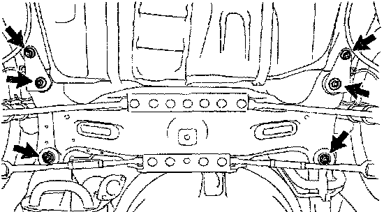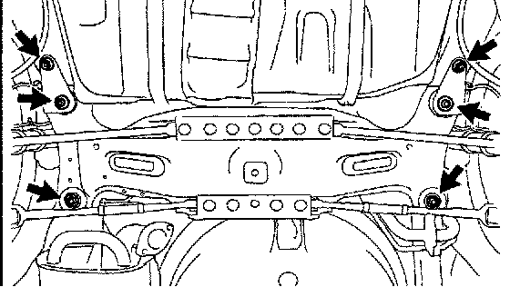 b. Remove the 4 nuts, 2 bolts and 4 retainers from the rear suspension member.